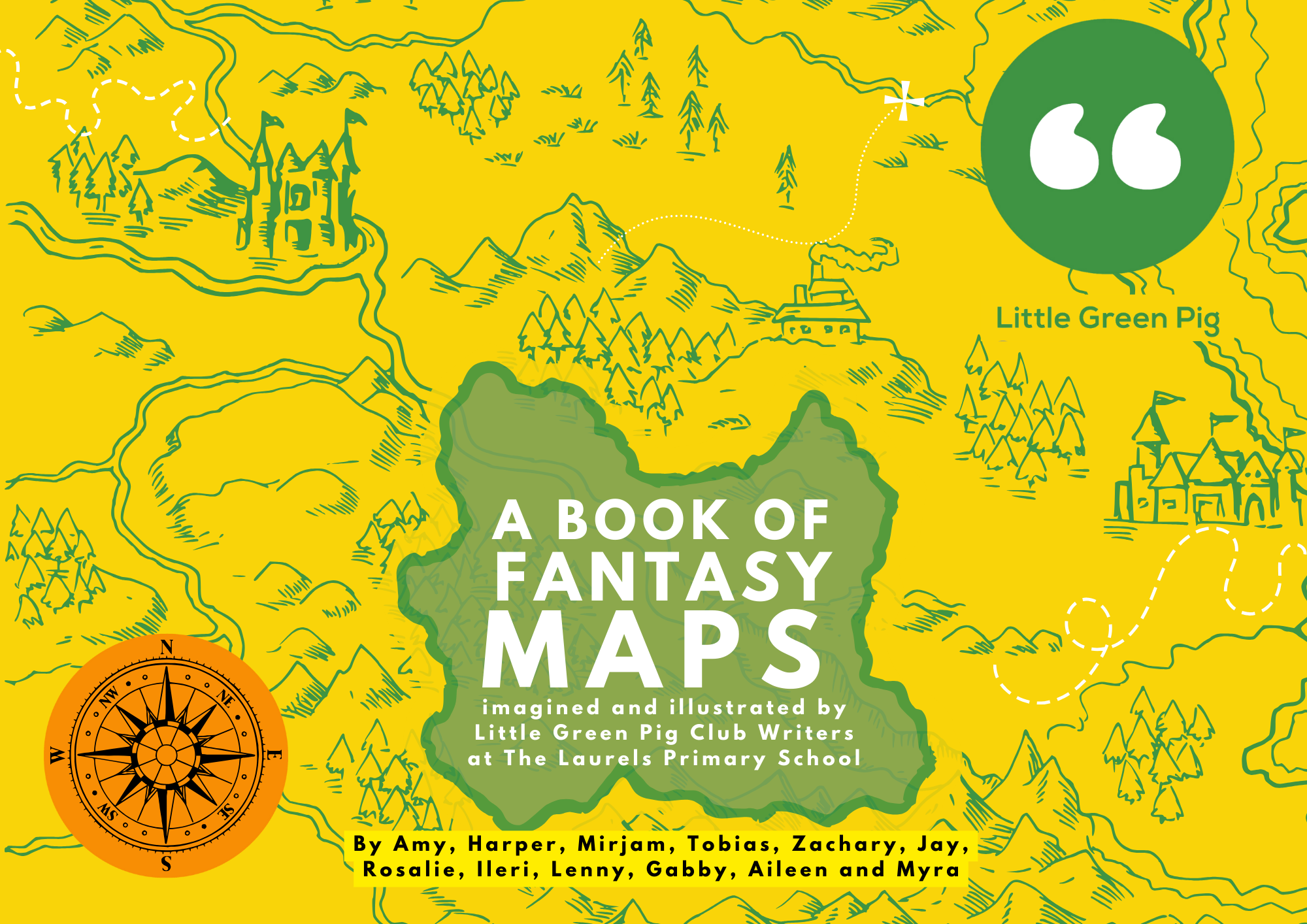 From the publisher: “Young writers from Little Green Pig's Worthing Club at The Laurels Primary School dreamt up their own worlds and created A Book of Fantasy Maps in Summer 2024. This book shares new original worlds designed by the children aged 7 to 11 alongside extracts of the stories they wrote about these unique lands. From guinea pig islands to territories inhabited by mythical monsters, the children created their own maps with the support of Brighton author/illustrator Helen Cann (author of Hand Drawn Maps) who visited to share her expertise plus workshop leader Rayna Haralambieva and Story Mentors. Inspired by a project conceived by Natalie England. Supported thanks to funding from Fonthill Foundation.”