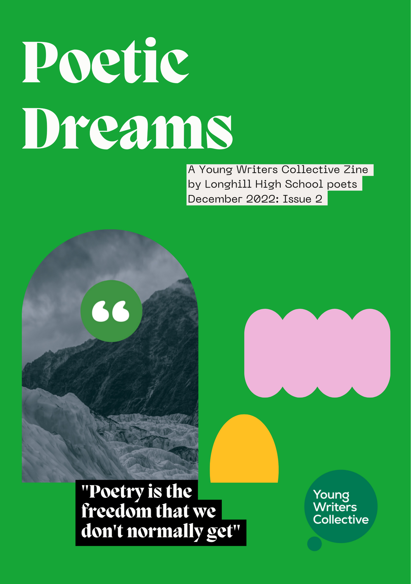 From the publisher: “Imagine expressing yourself when there is no lid on the box, and no limit to what could be. The poetry within this zine is bursting with wonderful creativity, deep introspection and big questions. It is full of hope and anger, excitement and festive cheer. And waffles... This collection was produced by students aged 1l to 16 from Longhill High School in Brighton, over a series of sessions with poet Roy McFarlane and a team of Little Green Pig mentors. The writers hope you enjoy reading Poetic Dreams as much as they enjoyed writing it!”